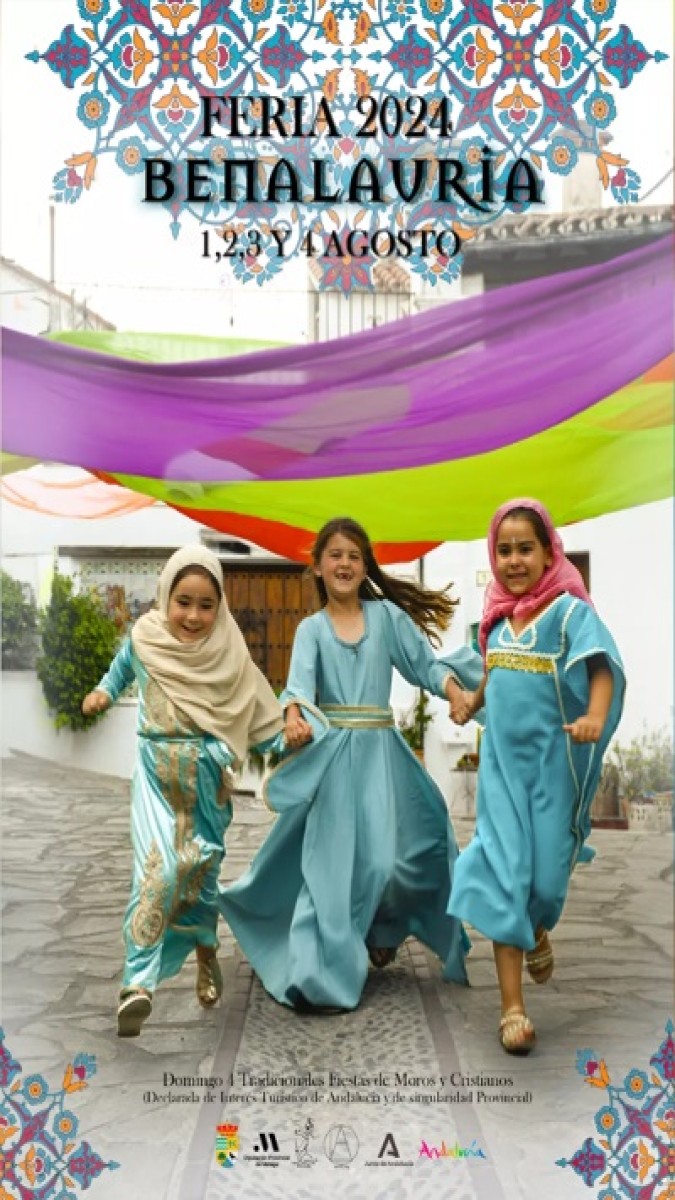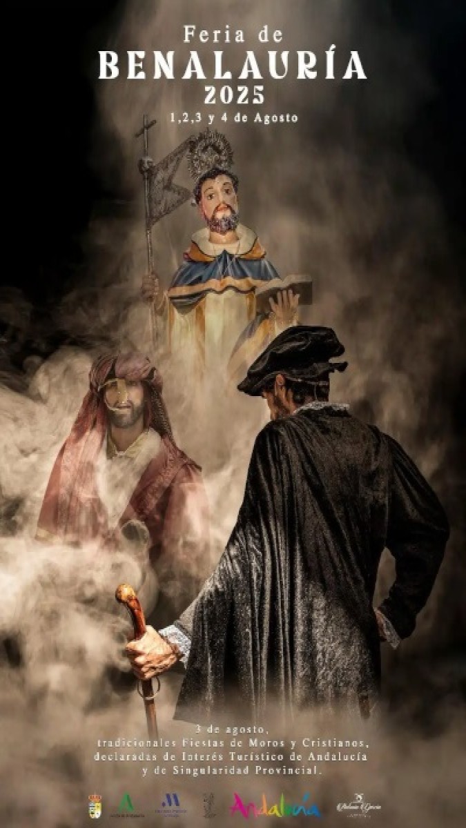 Las Fiesta de Moros y Cristianos de Benalauría, en la provincia de Málaga, concebida como un teatro callejero, se encuadra en la celebración, el primer fin de semana de agosto, de las Feria del municipio en honor a su patrón, Santo Domingo de Guzmán.