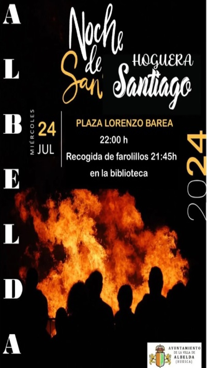 En la noche del 24 de julio, víspera de la festividad de Santiago Apóstol, en la plaza Lorenzo Barea de la villa de Albelda, municipio de la comarca de la Litera en la provincia de Huesca, arde una tradicional hoguera con motivo del día del patrón de España.