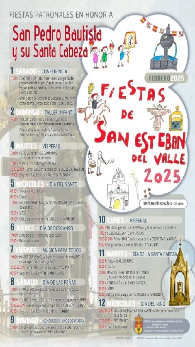 Del 4 al 12 de febrero la villa abulense de San Esteban del Valle, situada en la comarca natural del Barranco de las Cinco Villas en plena Sierra de Gredos, celebra sus Fiestas Patronales, también conocidas como Fiestas de Invierno, en honor a San Pedro Bautista, uno de los 26 mártires de Japón.
