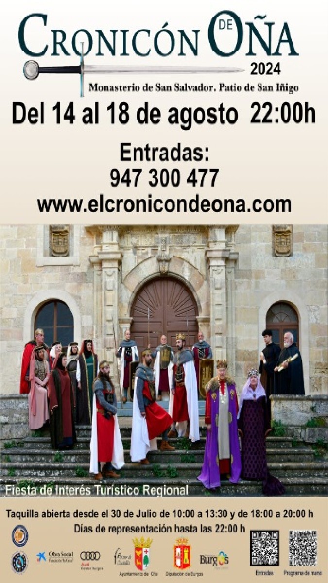 A mediados de agosto, la Iglesia Abacial de San Salvador, en la villa de Oña (Burgos), acoge la representación medieval de 'El Cronicón', escenificada magistralmente por sus vecinos, donde se narra la fundación del Monasterio y la historia de Castilla en los siglos X y XI.