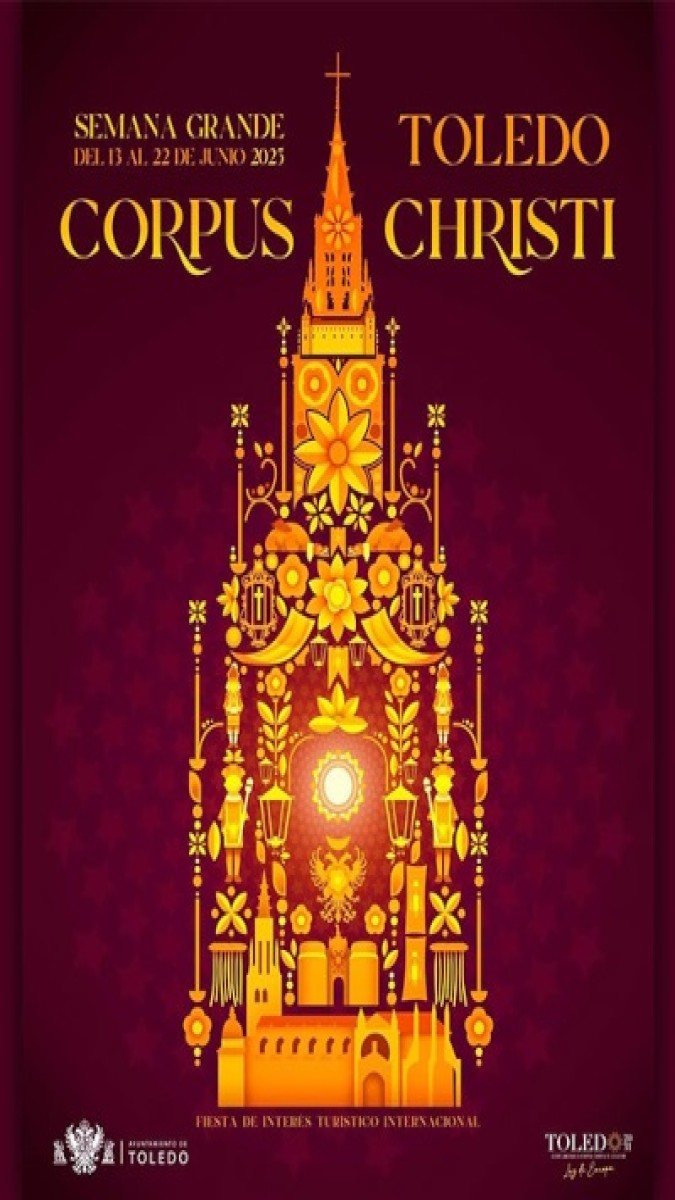 El Corpus Christi se celebró por primera vez en España en 1418 en la ciudad de Toledo. En estas Fiestas Mayores las calles de la ciudad son cubiertas con los tradicionales toldos o cielos, tapizadas con alfombras de hierbas aromáticas y engalanadas para la ocasión con macetas, colgaduras, faroles, guirnaldas…, destacando los ricos tapices de la escuela flamenca que cuelgan en el exterior de la Catedral.