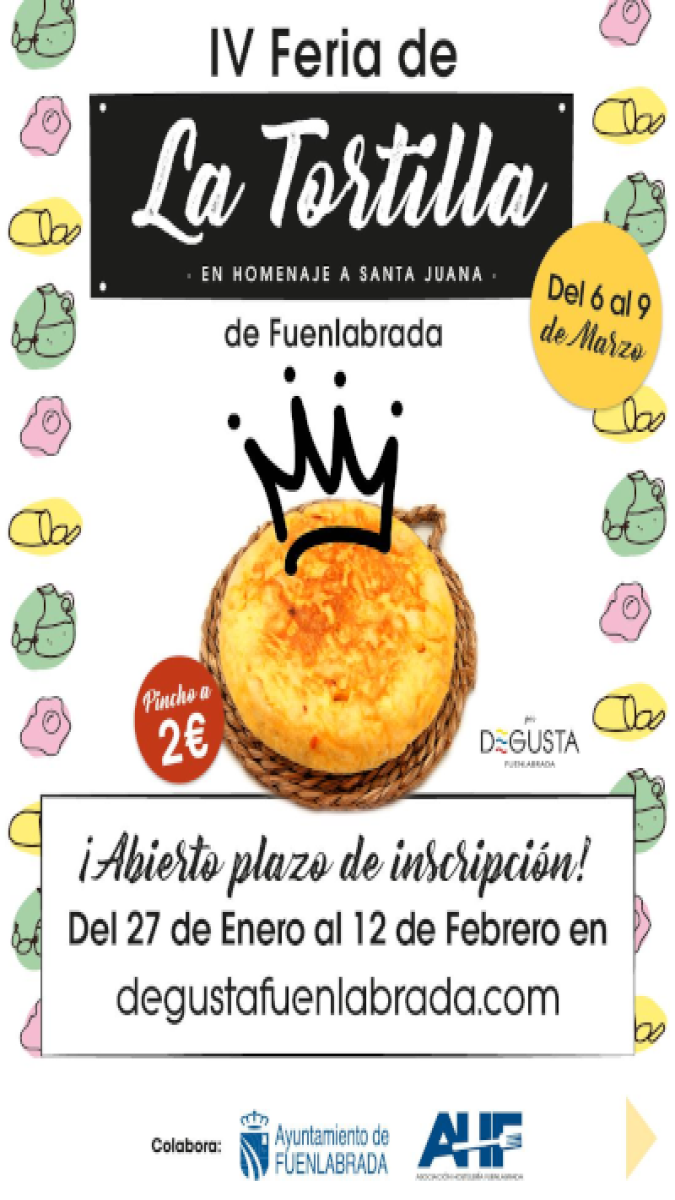 La localidad madrileña de Fuenlabrada, cada 9 de Marzo, celebra la festividad de Santa Juana, festejo también conocido popularmente como 'Día de la Tortilla'. Destaca de esta jornada la multitudinaria concentración campestre, a las que acuden más de 50.000 participantes.