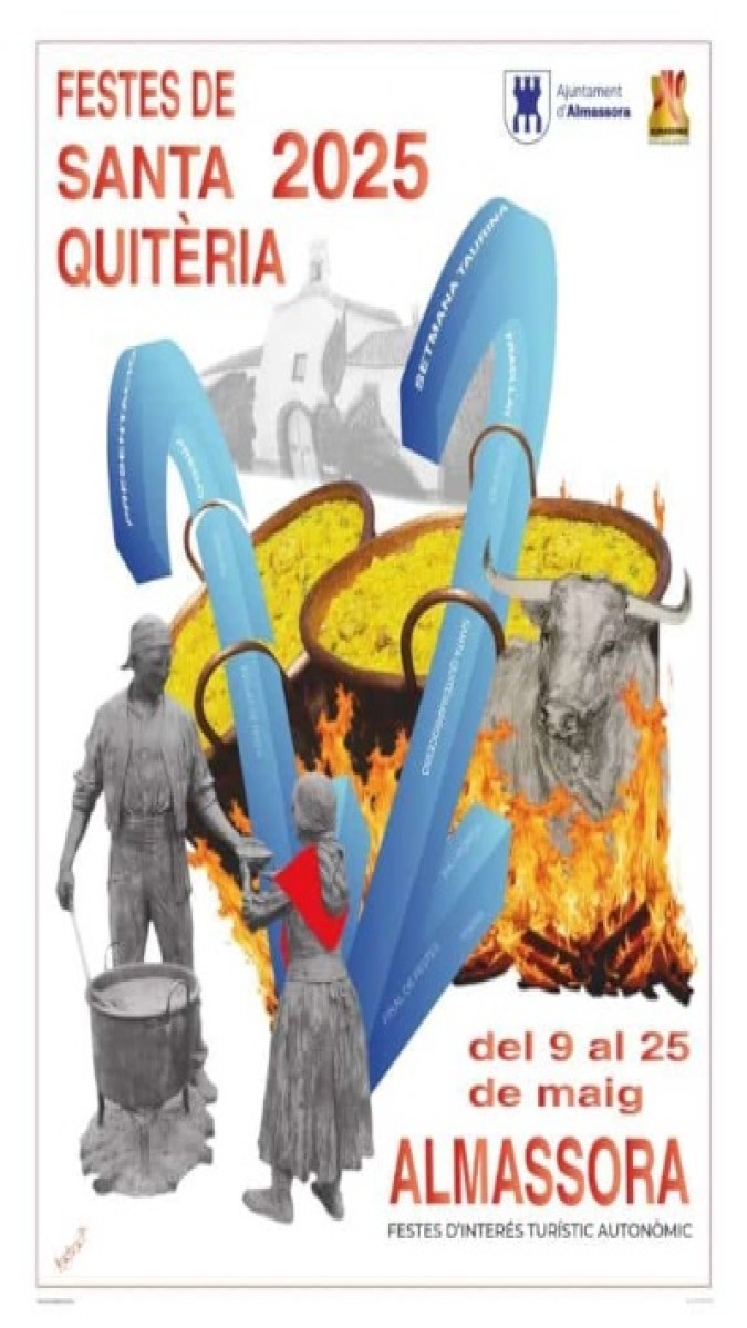Almassora  está de fiesta y se nota. Y en el marco de estas celebraciones tienen lugar Les Calderes, un día festivo dedicado a Santa Quiteria y en el que se reparte un guiso de arroz que, siguiendo con la tradición, se cocina en veintidós calderas de cobre. Les Calderes tiene su origen en un solidario reparto de alimentos a los más necesitados el día de la fiesta mayor del pueblo y representa e identifica el espíritu almassorí.