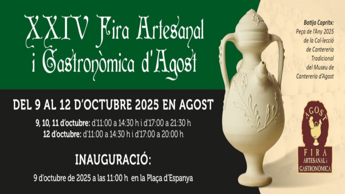 A comienzo del mes de octubre, coincidiendo con el puente del Día de la Comunitat Valenciana (9-octubre) y la Fiesta Nacional de España (12-octubre), la localidad alicantina de Agost celebra, desde el año 2001, su Feria Artesanal y Gastronómica.