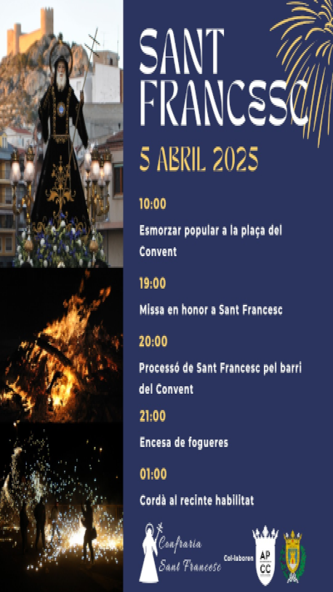 Estas fiestas conocidas popularmente como de Sant Francesc se celebran, en sábado, alrededor del 2 de abril —fecha en que aconteció el fallecimiento del Santo italiano—, variando en función del calendario litúrgico de la Semana Santa y Pascua de Resurrección.