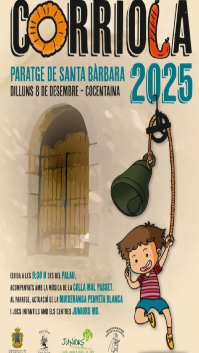 En Cocentaina, municipio de a provincia de Alicante, cada 8 de diciembre, festividad de la Inmaculada Concepción, tod@s l@s niñ@s contestan@s se reúnen en el paraje privilegiado de a ermita de Santa Bárbara para comerse 'La Corriola'; una rosca de pan en forma de polea hecha con levadura especial, acompañada de una longaniza roja tierna. Dos singulares viandas que dan forma a esta antiquísima tradición.