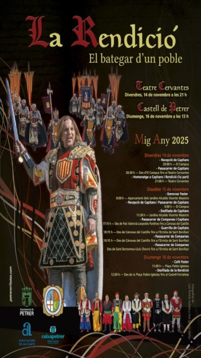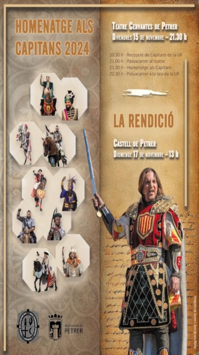 En la localidad alicantina de Petrer, tiene lugar la ‘Festa del Capitans’ en la que se rinde homenaje a los capitanes de las diez comparsas que conforman las Fiestas de Moros y Cristianos en Petrer, al tiempo que se escenifica el acto de la Rendición.
