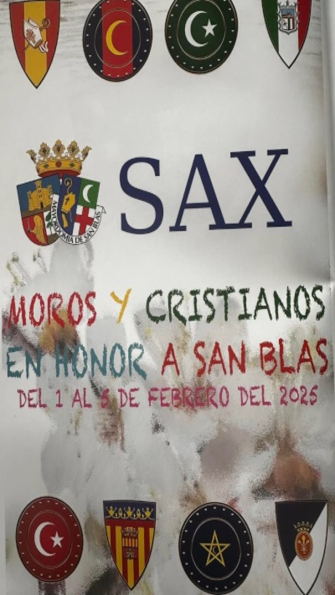 La Fiesta de Moros y Cristianos de Sax se celebra del 1 al 5 de febrero en honor a San Blas, patrón de la villa desde 1627. Desde ese año empezaron a organizarse celebraciones el día 3 de febrero, festividad del santo, lo que fue evolucionando hacia las actuales fiestas, cuya estructura actual empieza a tomar forma entre finales del siglo XVIII y principios del siglo XIX.
