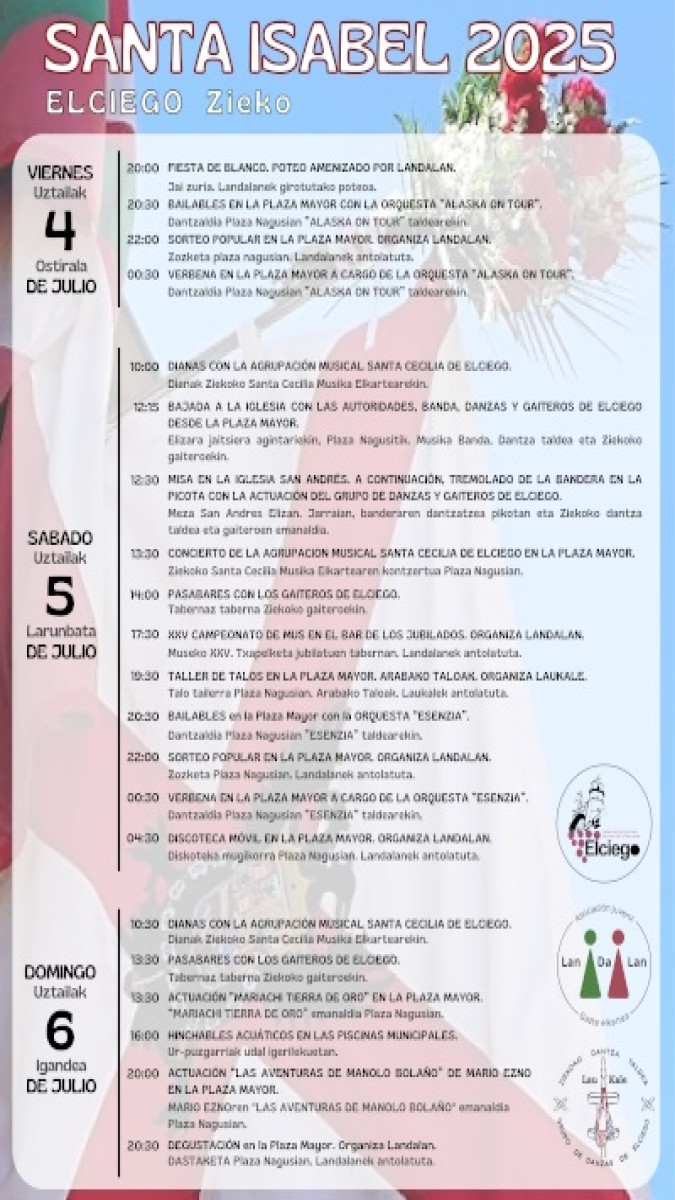 Esa es la parte curiosa de esta fiesta porque, más que con la Santa, parece ser que las celebraciones de Santa Isabel tienen que ver con la declaración de Elciego como villa independiente de Laguardia, reconocimiento que les fue otorgado por Felipe II el 2 de julio de 1583, previo pago