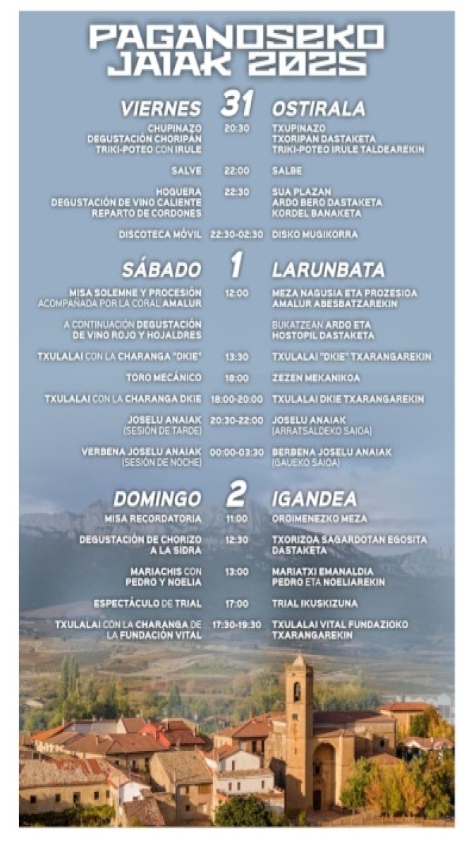 El domingo más próximo al 3 de febrero se celebra el día de San Blas en Páganos, y tal vez por ser las primeras fiestas del año en la zona, tienen tanta aceptación. Laguardia entera 'baja' a Páganos. Se baila el 'chulalai' y se besa la reliquia del Santo