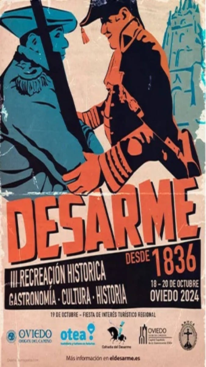 Tradición e historia en torno a la buena mesa. La Fiesta del Desarme en Oviedo, considerado el evento gastronómico más antiguo de España con más de un siglo de antigüedad, conmemora el triunfo de las tropas isabelinas sobre las columnas del General Sanz, durante la Guerra Carlista; de las diversas teorias ésta es la más aceptada.